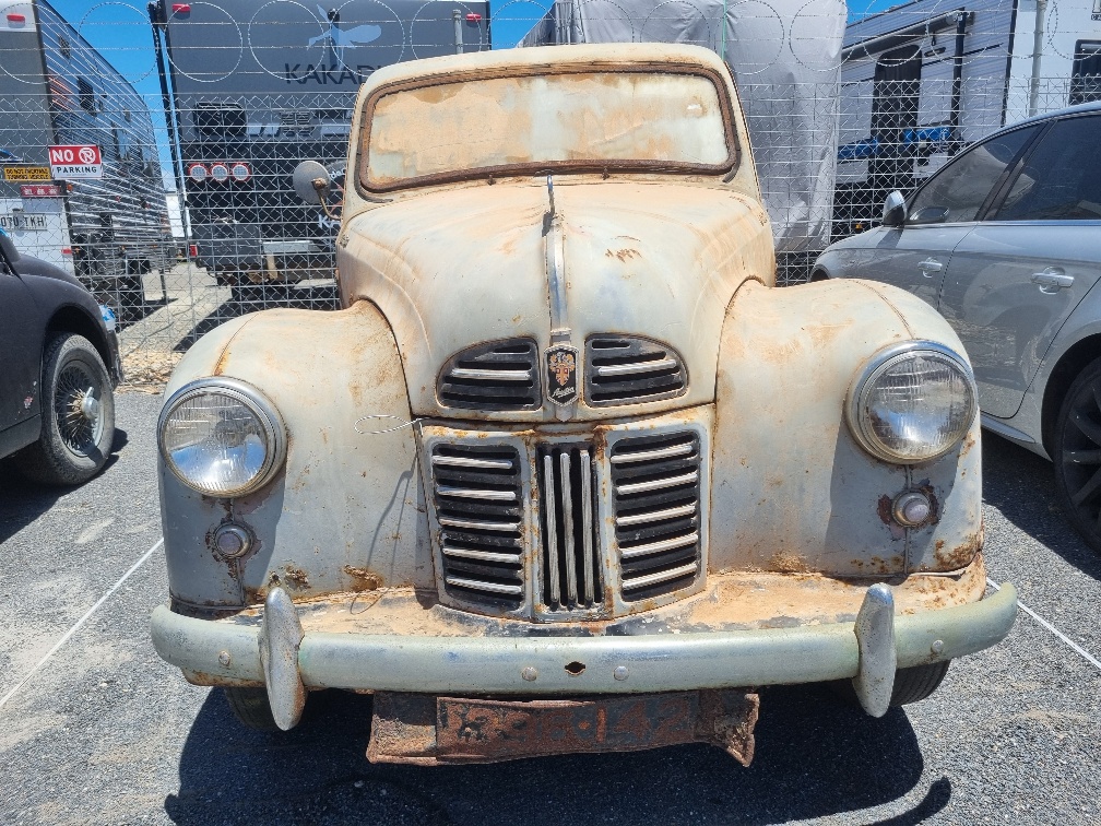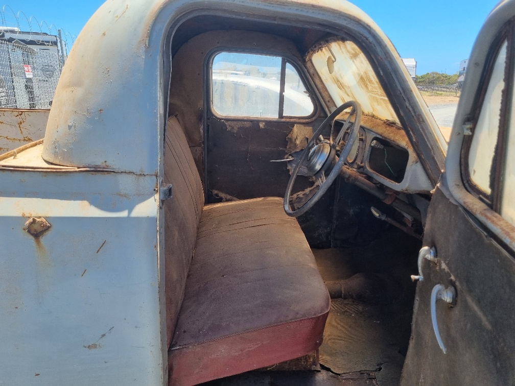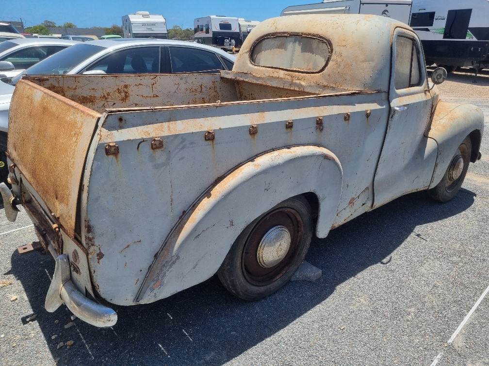 This Austin A40 Ute time warp is now available. Definitely a barnfind and a rare one at that to find in this original condition. Now available due to a clearance sale by collector owner. All complete and presents in good overall condition. Elderly owner keeping it in dry storage. Presents well with interior in good condition as well as the paint and panels presenting well for its age. Good overall well priced vehicle with a complete engine that you can easily restore and get running for the mechanically inclined. Presents in original grey with lots of patina and red bench seat interior. Has all gauges in place. Pictures show the condition of the vehicle. A beautiful vehicle that is hard to come by in this condition. Stand out in a crrowd. Please arrange an appointment for viewing. More on the vehicle at the following YouTube link: https://youtu.be/ZI7V1vZy8o4?si=rH_v5gsXaPNf2Xo_