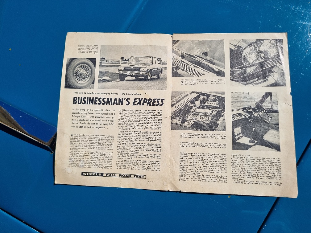 This is a rare offering. Triumph 2000 MK1 Managing Directors special with triple stromberg 150 carbies.Manual Overdrive business saloon with lots of extras is now for sale. This is a rare car to come across with very few for sale in this condition and original colour combination. Owned by an elderly custodian who spent lots of time and money to get it to look like it does with receipts to show works done. Mechanically sorted and ready to drive away. Thousands spent and has been a labour of love. Recently tuned, chrome wire wheels, factory tachometer and more. Very clean and tidy overall with a great presence. Clean engine bay. A nice looking car overall with a wonderful colour of blue with beige duco. Pictures show the condition of the vehicle. Runs, drives and sounds very well. It has a nice exhaust note and is perfect to take those twisty roads for those Sunday runs in the hills. Highly sought after chrome bumper edition with all the desired grille and headlights. Overdrive gear on 3rd and 4th. Please contact to arrange an appointment for viewing. YouTube Link at the following https://youtu.be/io99KbmSzCY?si=OVZdTHl6rEc-GwZl